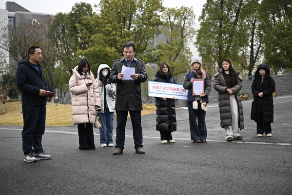 曹晓富代表赢彩向合肥公交集团递交了感谢信,并授予“赢彩接驳专线”服务标识牌,感谢公交集团为校园交通作出的积极贡献。